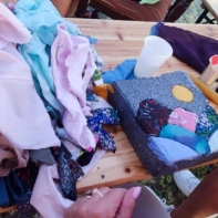 kwiaty papierowe w wiankach i bransoletkach oraz pejzaże w technice kimemoki.