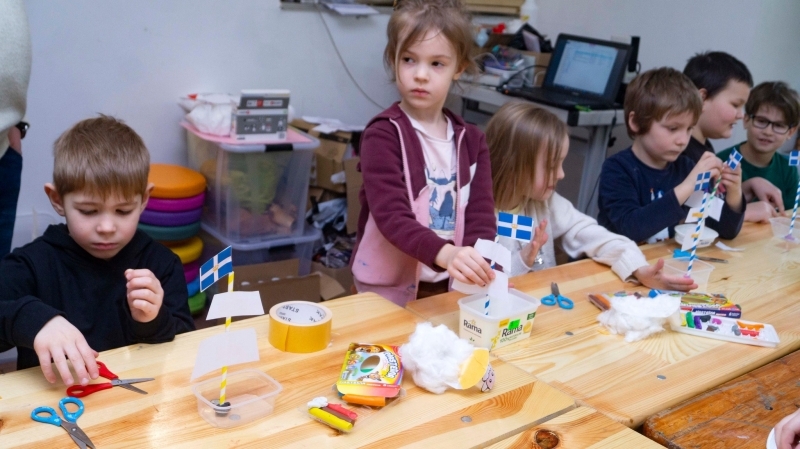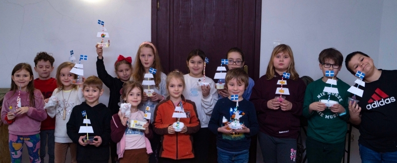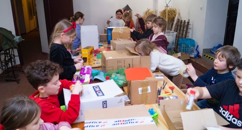 Po przerwie przyszedł czas na zrobienie ateńskiego bałwana złożonego z butelek, waty i styropianowej kuli. Na koniec zajęć robiono z kartonów greckie dworce kolejowe.