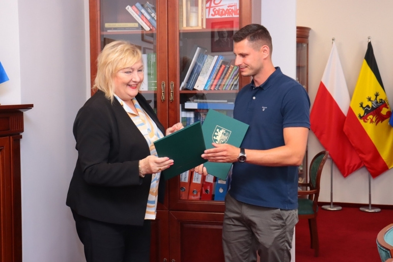 Powiat Inowrocławski zawarł umowę na konserwację Domu Rodziny Jana Kasprowicza w Szymborzu oraz jego wyposażenie. Dokument podpisała dziś Wiesława Pawłowska Starosta Inowrocławski i Szymon Wielich właściciel Przedsiębiorstwa Budowlanego MON-TEK z Inowrocławia - wyłoniony w przetargu wykonawca zadania. W spotkaniu uczestniczyła Joanna Kuchta Naczelnik Wydziału Rozwoju, Planowania Inwestycji i Inicjatyw Europejskich.