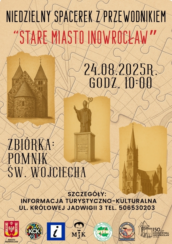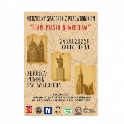 Jak przed rokiem włączamy się w organizowane przez Informacja Turystyczno-Kulturalna Inowrocław Niedzielny Spacerek z Przewodnikiem. Tym razem przewodnika wystawi Muzeum im. Jana Kasprowicza. Zapraszamy do wspólnego zwiedzania Starego Miasta. W programie opowieść o miejscu gdzie zaczął się Inowrocław! Podejmiemy próbę odnalezienia wszystkich tajemniczych rytów i płaskorzeźb na murach kościoła pw. Imienia NMP, wskażemy miejsce odnalezienia XIII-wiecznych szachów, odwiedzimy skrywające mroczne tajemnice Wiesiołki i opowiemy o katastrofie z 7 listopada 1911 r. Oczywiście towarzyszyć nam będzie czar architektury przełomu XIX i XX w.