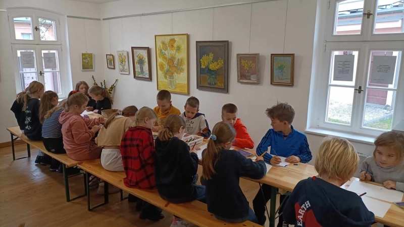 Mali artyści z Szkoła Podstawowa nr 10 im. Jana Kasprowicza w Inowrocławiu wzięli udział w warsztatach plastycznych prowadzonych przez artystę Ryszarda Barczaka, którego krajobrazy i kwiaty prezentowane są na wystawie "Krajobrazy moje to wspomnienie" w Domu Rodziny Jana Kasprowicza w Szymborzu. Zajęcia plastyczne wśród dzieł sztuki tylko w Muzeum!!! Zapraszamy!!!