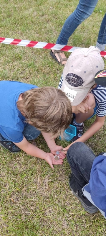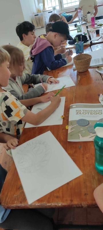 Nie obyło się bez poszukiwań zagubionych monet. Okazało się, że w trawie nie tak łatwo wszystko odnaleźć (przypadkowych Znalazców monet z muzealnego ogrodu uprasza się o oddawanie znalezisk do sekretariatu). Warsztaty wakacyjne nie obyły się bez prób fałszerstw - ale i to okazało się nie takie łatwe... Zajęcia zwieńczyło inspirowane komiksem "NA TROPACH ZŁOTEGO" projektowanie własnych monet (nederytowych również). Powstały również autorskie komiksy o poszukiwaniach skarbów. Była to niepowtarzalna okazja do przyjrzenia się z bliska zabytkowym monetom i wybranym numizmatom przekazywanym przez Narodowy Bank Polski do Muzealnych zbiorów.