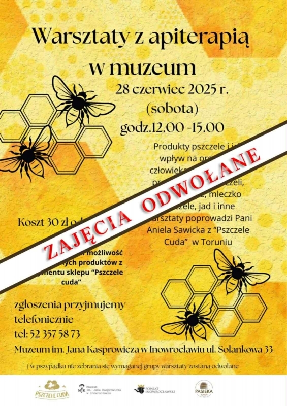 Muzeum im. Jana Kasprowicza w Inowrocławiu z przykrością informuje, że warsztaty zaplanowane na 28 czerwca 2025 r. zostały odwołane.