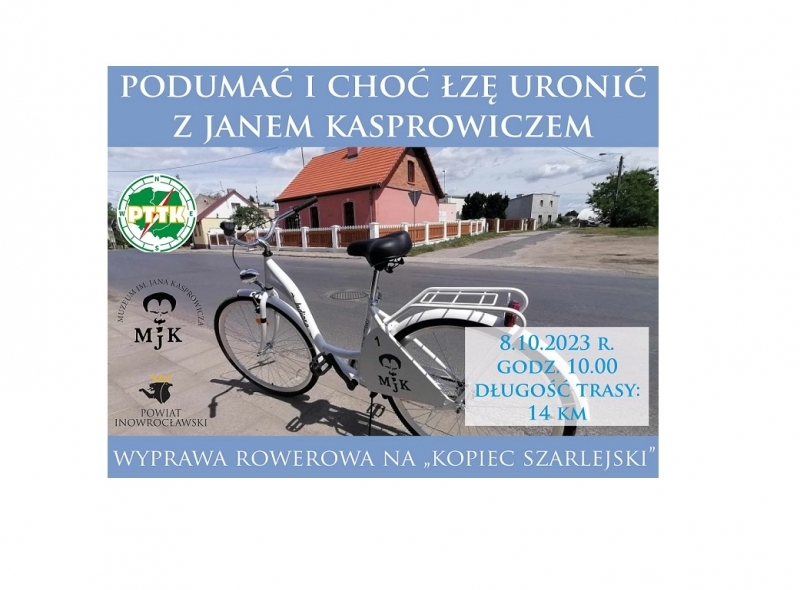 Zapraszamy w niedzielę (8 października) na rowerową wyprawę na "szarlejski kopiec". Zbiórka o 10:00 przed Domem Rodziny Jana Kasprowicza w Szymborzu. Obowiązują zapisy pod nr tel. 52 357 58 73!!! Zapewniamy poezję, wzruszenia, nieco historii... Pojedźmy razem "podumać i choć łzę uronić"...