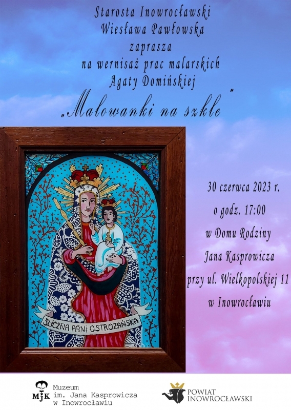 Wystawy uświetniające powrót Domu rodziny Jana Kasprowicza w Szymborzu - oddziału Muzeum im. Jana Kasprowicza w Inowrocławiu - honorowym patronatem objęła Wiesława Pawłowska Starosta Inowrocławski.