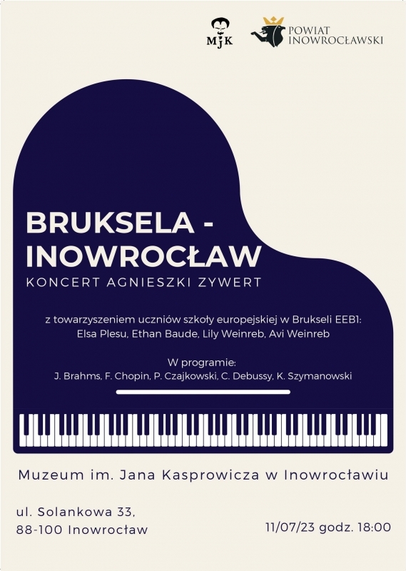 11 lipca o godzinie 18:00 odbędzie się w Muzeum im. Jana Kasprowicza w Inowrocławiu przy ul. Solankowej 33 koncert fortepianowy Agnieszki Zywert - pianistki wywodzącej się z Inowrocławia.