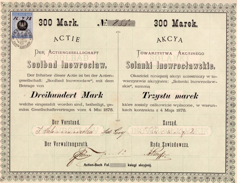 Mówiłem tam dosłownie: "Dzień dzisiejszy (...)przypomina nam pilną potrzebę utworzenia w Inowrocławiu Muzeum Kujawskiego. Miasto nasze jako stolica tej dzielnicy, która według legendy była kolebką Polski, musi dołożyć wszelkich starań, aby nasze regionalne zabytki nie zanikały i nie niszczały. I dlatego obok biblioteki musi być muzeum regionalne. (…) na społeczeństwie ciąży wielki obowiązek współpracy przez zgromadzenie i oddawanie zabytków do tego muzeum. Chciałbym dzisiaj dać zaczątek tej akcji i jako osobisty mój pierwszy dar do Muzeum Kujawskiego składam jedną akcję Solanek Inowrocławskich, wydaną w r. 1875 z podpisami Łucjana Grabskiego i Zygmunta Wilkońskiego."