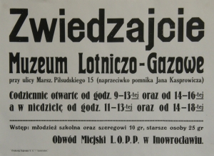 Muzeum Lotniczo-Gazowe w Inowrocławiu – pierwszą wystawę lotniczą Miejski Komitet Ligi Obrony Powietrznej i Przeciwgazowej w Inowrocławiu zorganizował w 1929 r. w Szkole im. S. Staszica. W latach 1930-1931 ekspozycję przeniesiono do Parku Miejskiego (Teatru).